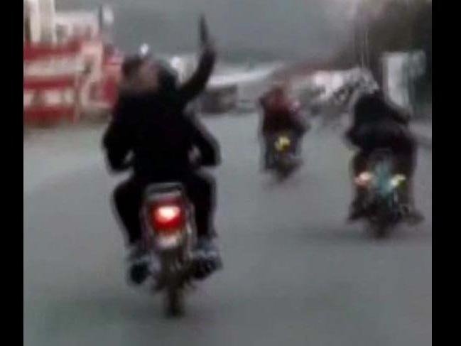 Ankara'nın Yenimahalle ilçesinde trafikte hareket halindeki motosikletten havaya ateş açan kişiler cep telefonu kamerasına yansıdı.