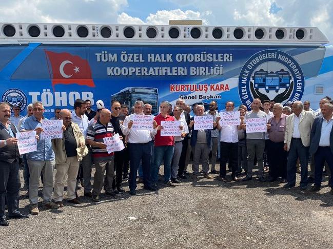 TÖHOB Genel Başkanı Kurtuluş Kara, "Bugün burada toplanma sebebimiz, akaryakıt maliyetlerinin her gün artmasıdır. Şu anda ortalama biniş fiyatı 15 lira olması gerekirken, tam bilet 6,5 lira, öğrenci 4,5 liradır. Biz zam istemiyoruz; biz İstanbul'da belediyenin araçları kiraladığı gibi, Ankara Büyükşehir Belediyesi'nin de yaklaşık 850 halk otobüsünü kiralamasını istiyoruz. Biz zam istesek, akaryakıt fiyatı yine artacak" dedi.