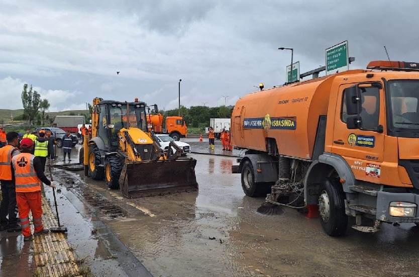 Elif Ebru Yıldırım yönetimindeki 06 CVY 916 plakalı otomobil ile Kadir Okcan yönetimindeki 06 BHK 827 plakalı otomobil, arızalanarak yolda kaldı. İhbar üzerine bölgeye Ankara Büyükşehir Belediyesi ile Karayolları Genel Müdürlüğü ekipleri sevk edildi. 2 otomobil, iş makineleri ile çekilerek su birikintisinden çıkarıldı. Suyun tahliyesi için de çalışma başlatıldı. Yaklaşık 1 saat süren çalışmayla su tahliye edilerek, yol ulaşıma açıldı.