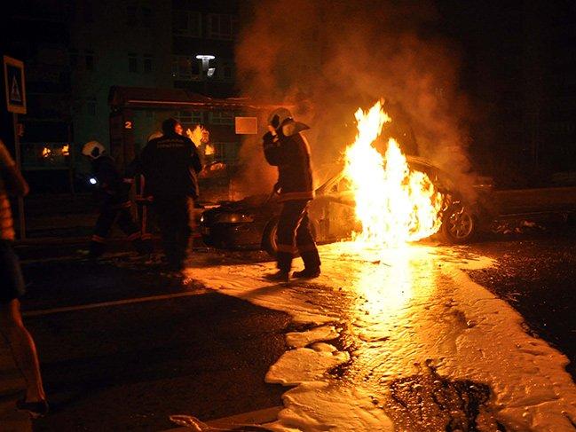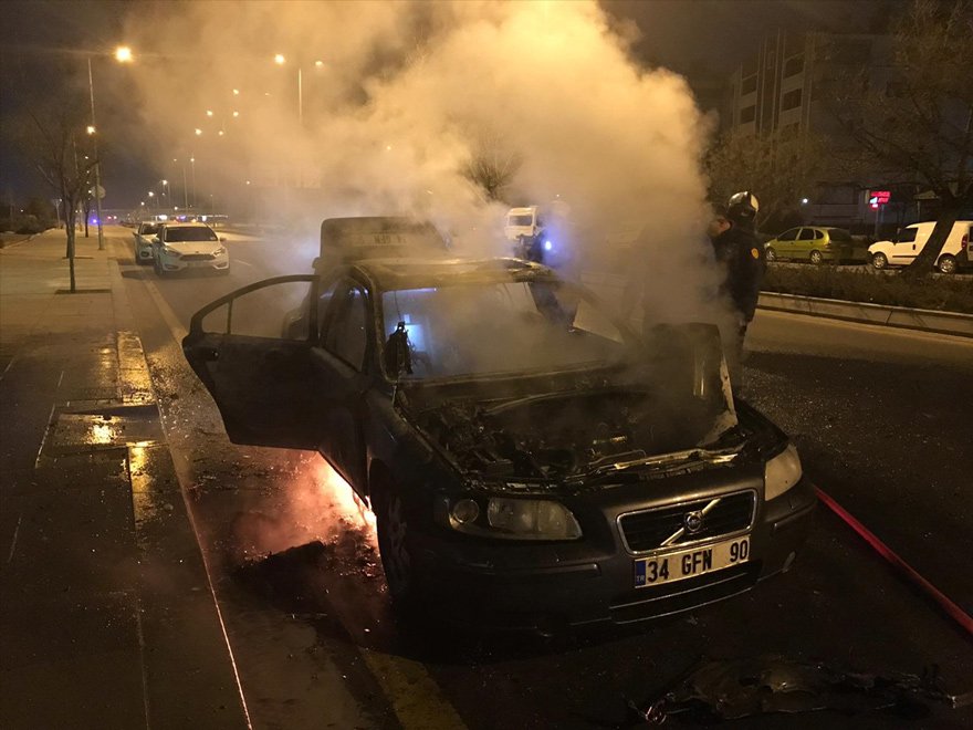 Fotoğraf: AADurumu fark eden sürücü ile otomobilde bulunan iki arkadaşı aracı Gülşehir Sitesi önünde yol kenarına park edip itfaiyeye haber verdi.