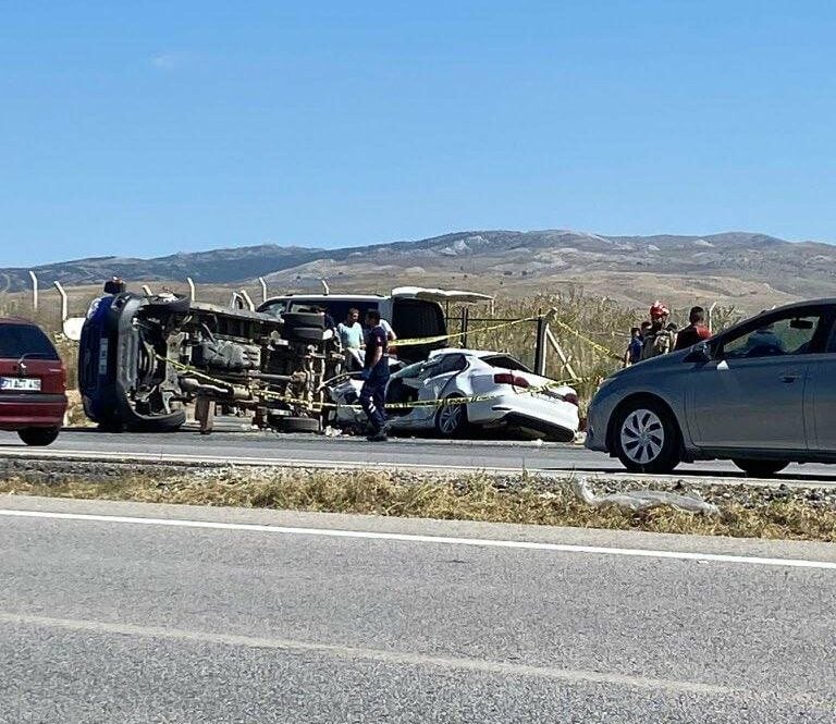 Arkadan gelen otomobil minibüse çarptı. Kazaya karışan araçlara çarpmamak için sürücüsünün manevra yaptığı başka bir otomobil de yol kenarındaki otluk araziye devrildi.