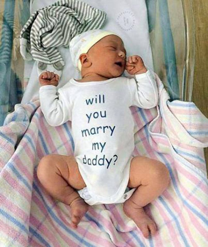 Doğumdan sonra annesinin kucağına, "Babamla evlenir misin?" yazan tulumuyla gelen bebek, annesini şaşırttı.