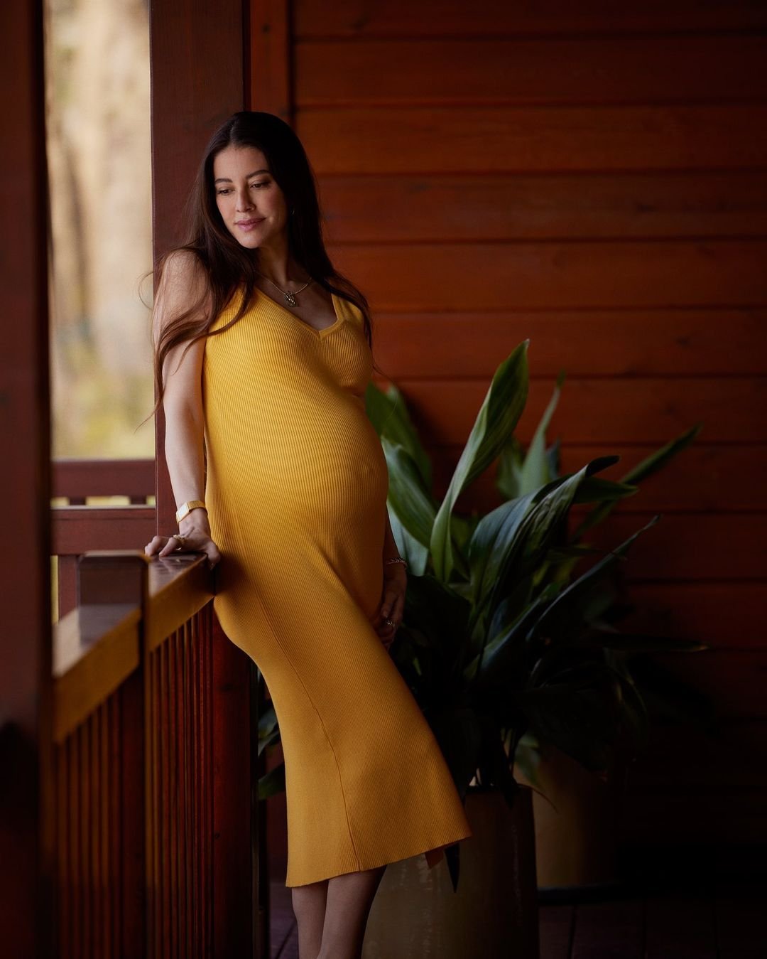 8,5 aylık hamile olan Başak Dizer, Instagram hesabından karnı burnunda pozlarını paylaştı.