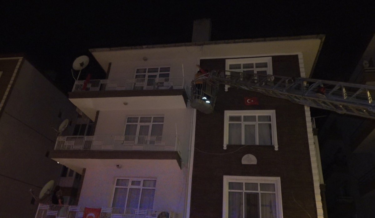 İhbar üzerine adrese polis ve itfaiye ekipleri sevk edildi. Ahmet N., itfaiye merdiveniyle 3. kattaki evin balkonundan içeri girdi. Kısıtlama nedeniyle sokağa çıkmaması gerektiğini uyaran polis, küçük yaştaki çocuklarını bir daha evde tek bırakmaması gerektiğini söyledi. (İHA)