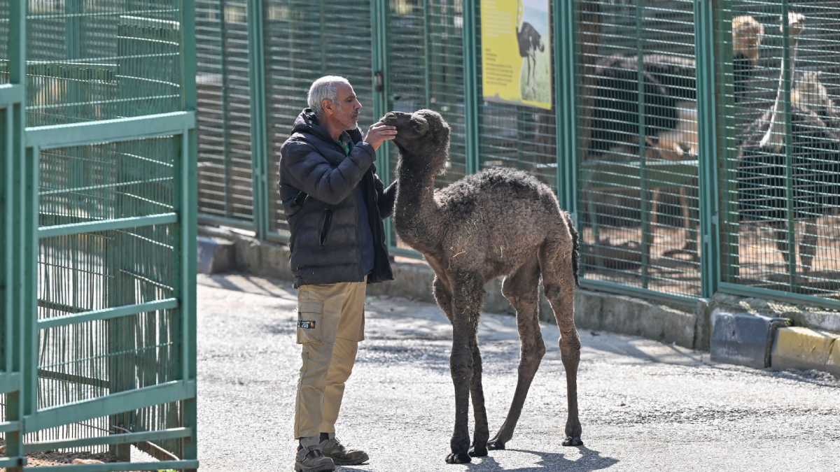 Yaklaşık 20 yıldır Doğal Yaşam Parkı'nda deve, zebra gibi hayvanların bakıcılığını yapan Hasan Avcı, 10 gün önce dünyaya gelen ve "Boncuk" adını verdiği deve yavrusunun beslenmesinden temizliğine her şeyiyle yakından ilgileniyor.