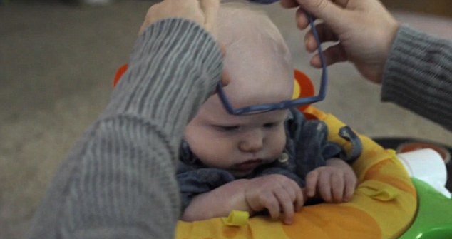 Görüntülerde, Leopold bebeğin özel gözlüğün takılmasından sonra ilk anda şaşırdığı görülüyor.