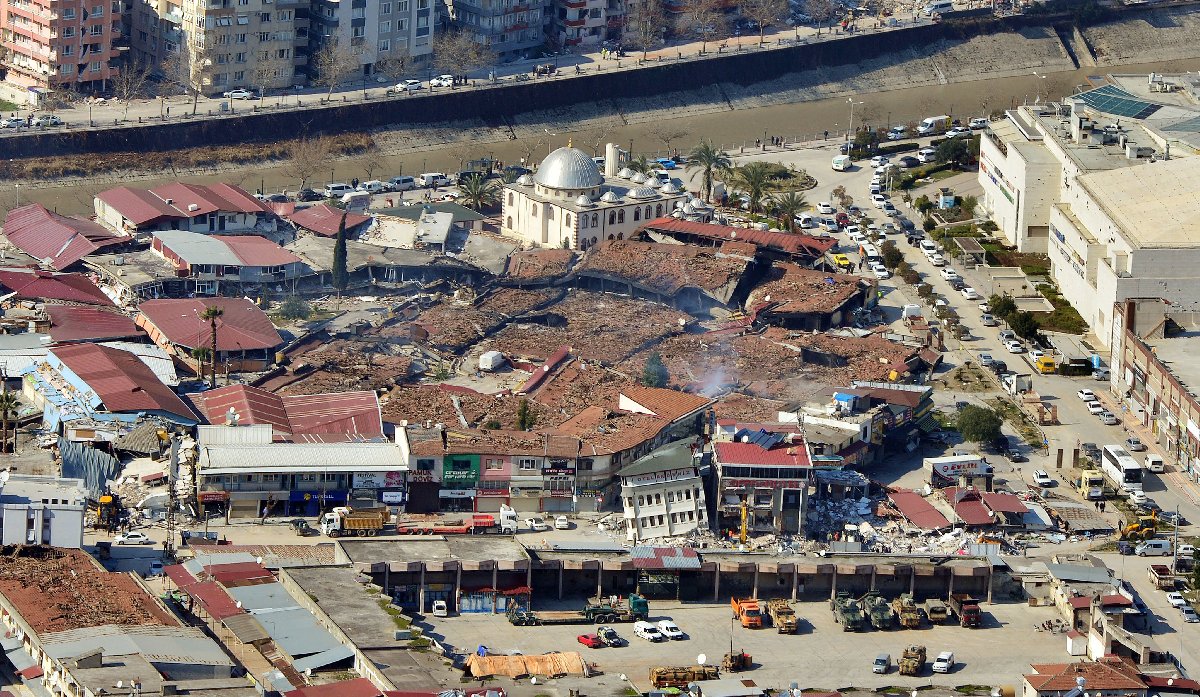 Türkiye'yi derinden sarsan Kahramanmaraş merkezli 2 büyük deprem sonrası 5 gün geride kalırken, Asi Nehri'nin eski ve yeni olarak ikiye ayırdığı Antakya'daki hasarın izleri, ilçeyi kuş bakışı gören Antakya Kalesi'nden net olarak görüntülendi.