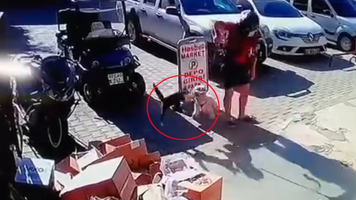 Güvenlik kamerasına yansıyan görüntüde, A.S.S.'nin motosikletiyle marketin önüne gelip, yanındaki köpeğiyle indiği görüldü. Bu sırada köpeğe yaklaşan kedinin saldırdığı, ardından A.S.S.'nin köpeği kucağına aldığı, sonra da kediyi 2 kez tekmelediği anlar görüntüde yer aldı.