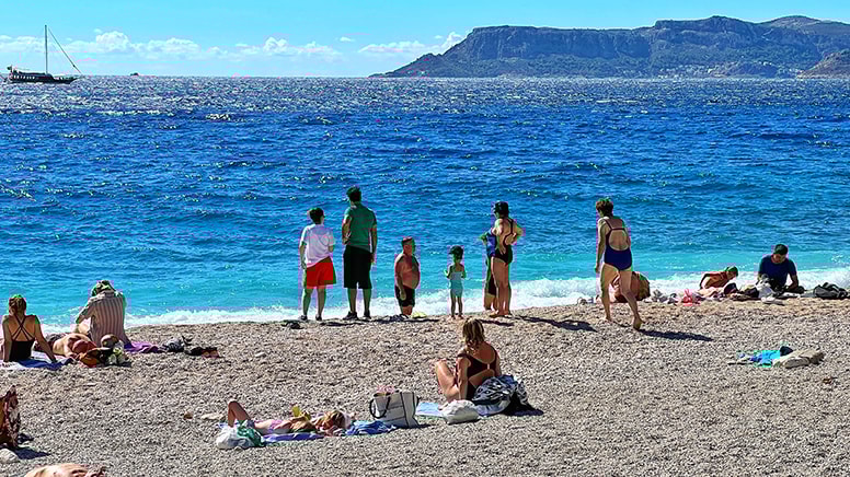 Antalya'nın Kaş ilçesinde iki gündür etkili olan yağışların ardından güneşli havayı fırsat bilen yerli ve yabancı turistler sahillerde yoğunluk oluşturdu.