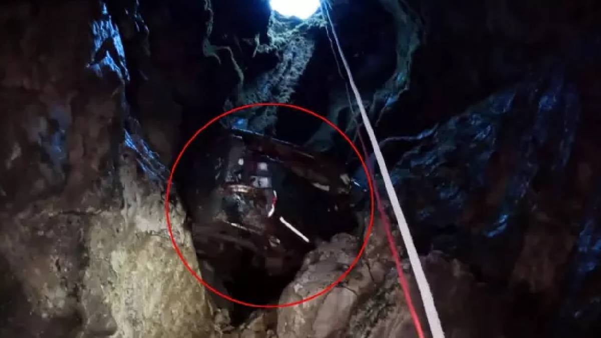 Profesyonel ekipmanlarıyla yaklaşık 45 metrelik dikey iniş gerçekleştiren dağcılar, kafa lambalarını yaktıklarında mağaranın tabanında parçalanmış bir otomobil ile karşılaştı. Mağaranın çevresinde araç geçebilecek bir yol bulunmaması ve bölgenin sarp yapısı, aracın oraya nasıl ulaştığı konusunda büyük bir soru işareti yarattı.