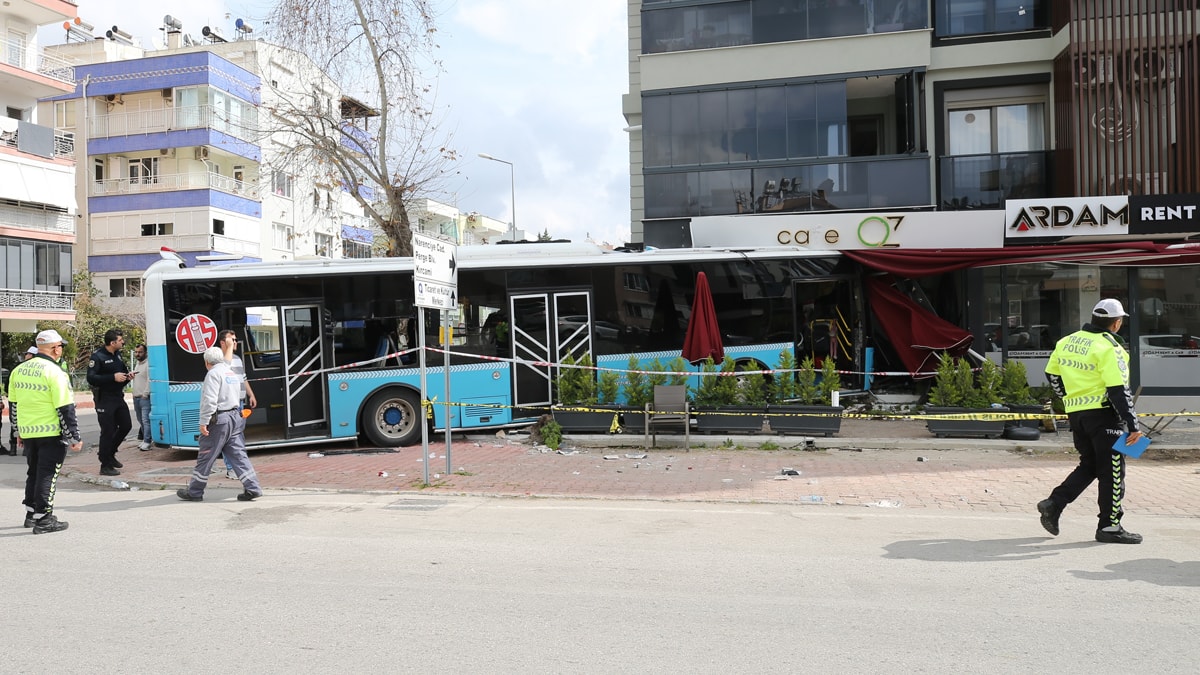 Emre K.'nin (32) kullandığı Büyükşehir Belediyesinin 07 AU 0253 plakalı halk otobüsü, Zerdalilik Mahallesi Cebesoy Caddesi'nde, yol kenarında park halindeki 6 araca çarptıktan sonra bir kafenin camlarını kırarak içeri girdi.