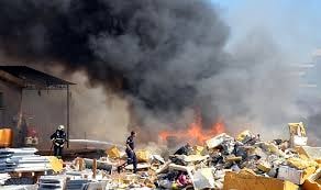 Atık malzemelerin tutuşmasıyla büyüyen yangın sebebiyle gökyüzü siyah dumanla kaplandı.