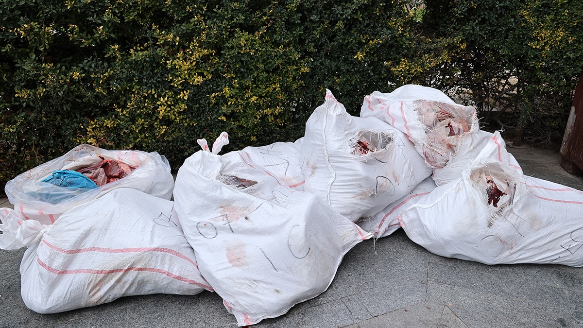 Çuvalları kontrol eden ekipler, yaklaşık 1,5 ton karaciğer tespit etti.