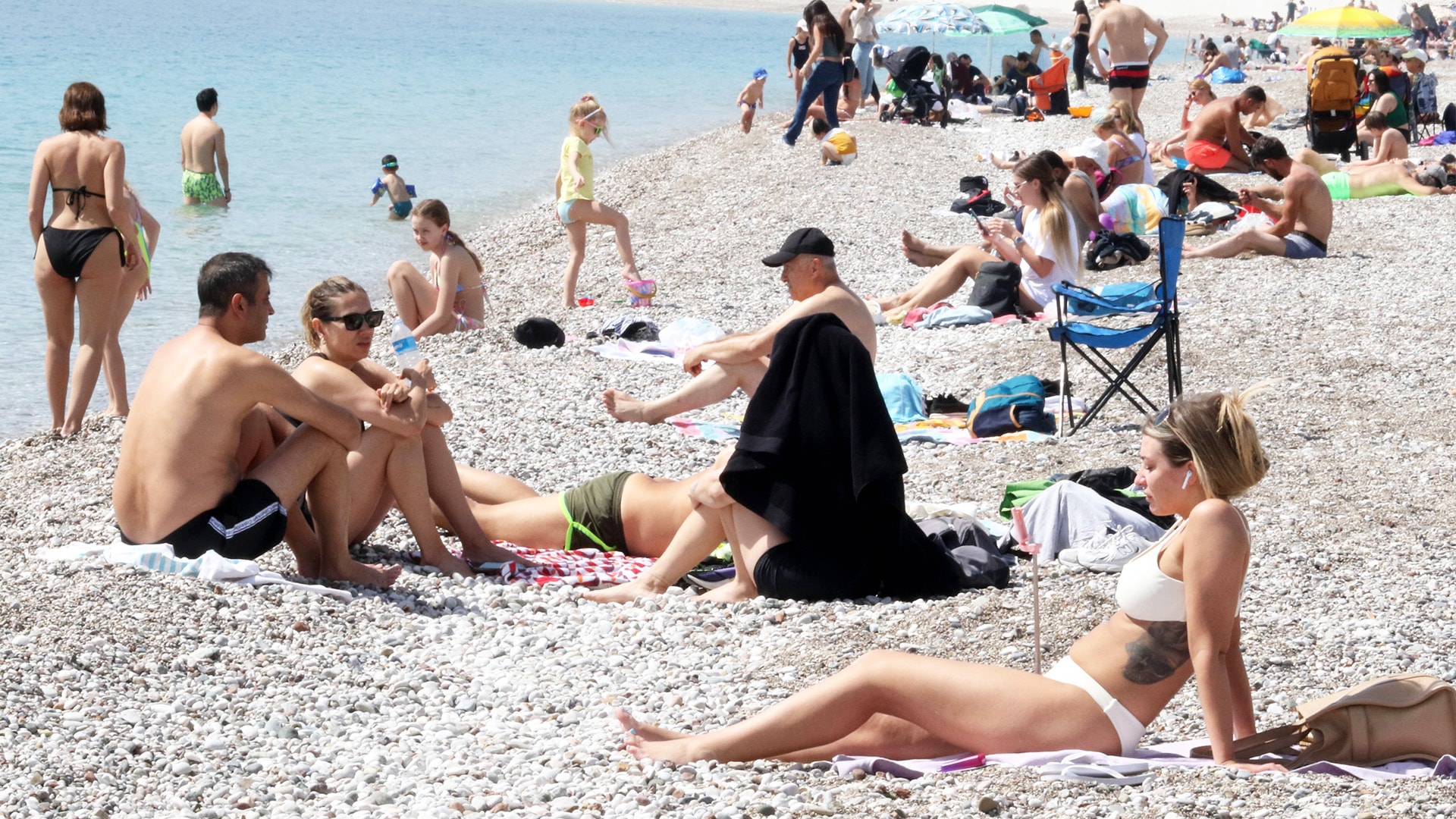 Konyaaltı Sahili'ne gelen vatandaşlardan bazıları denize girerken bazıları ise güneşlenmeyi tercih etti. Denize girmeyenler ise sıcak havanın tadını sahilde oturarak çıkardı.