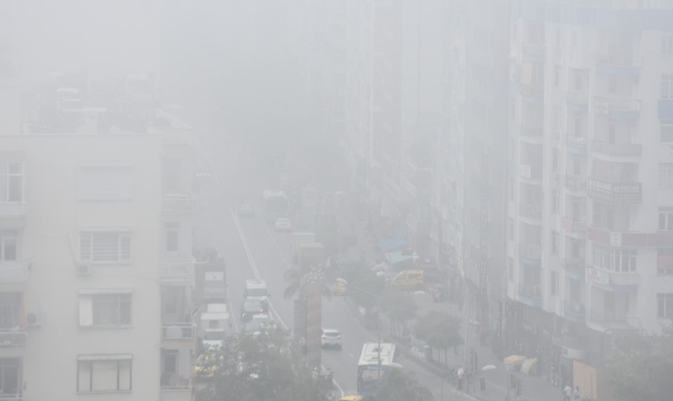 Antalya'da kent merkezinde sabah saatlerinden itibaren sis bulutu ve toz taşınımı nedeniyle görüş mesafesi azaldı. Seyir teraslarından bakıldığında Konyaaltı sahil şeridi ve ötesindeki Beydağları pus nedeniyle zor görüldü.