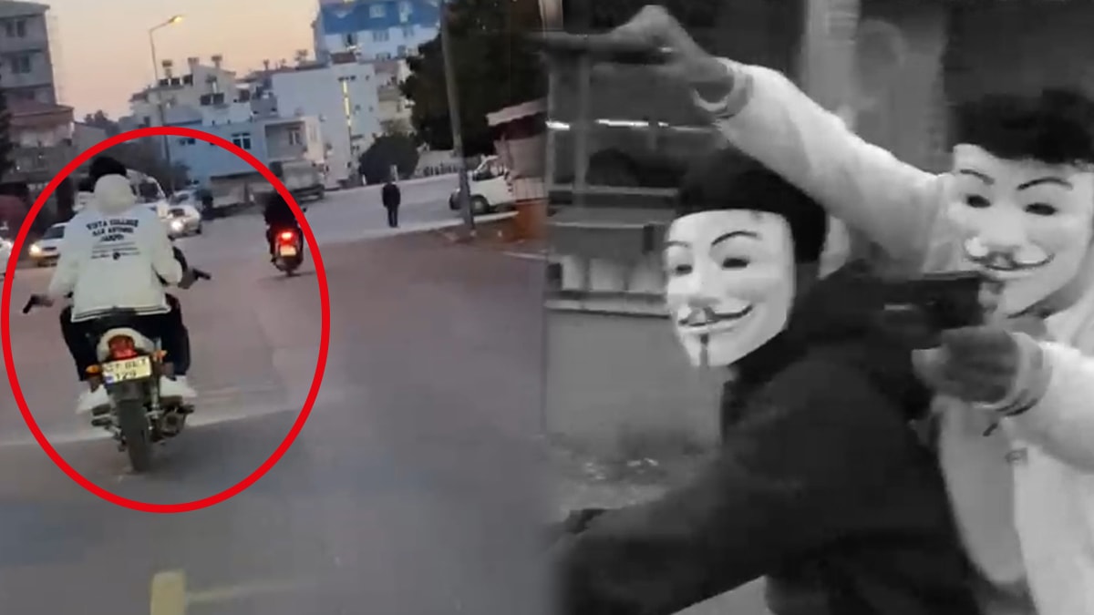 Antalya'nın Serik ilçesi Merkez Mahallesi Salı Pazarı civarında dün akşam saatlerinde motosiklet üzerinde, yüzlerinde maske bulunan iki gençten arkada oturan, seyir halindeyken iki elindeki iki tabancayla, yol güzergahındaki sürücü ve vatandaşlara doğrultup korku dolu anlar yaşattı.