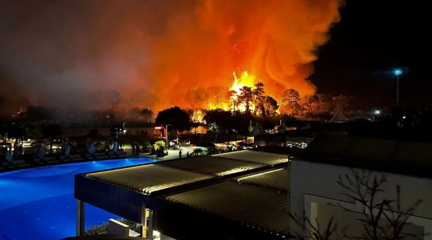 Yangının sahil istikametine ilerlemesi üzerine bölgedeki lüks bir otel güvenlik gerekçesiyle tahliye edildi. Otelde konaklayan tatilciler otobüslerle çevredeki diğer otellere taşınırken, bazı tatilcilerin ellerinde valizleriyle yollarda beklediği görüldü.