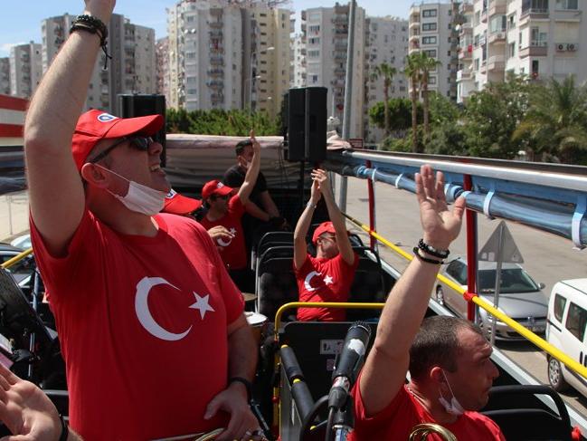 Antalya Büyükşehir Belediyesi Bando ve Orkestrası, TBMM’nin açılışının 100. Yıl dönümü ve 23 Nisan coşkusunu en güzel şekilde yaşamak, salgın nedeniyle evlerinde kalan vatandaşlara moral vermek için mahalleleri dolaşarak mini konserler düzenledi. Ellerinde Türk Bayrakları ile balkonlarından konsere eşlik eden Antalyalılar, büyük mutluluk yaşadı.
