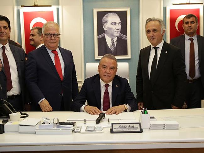 Muhittin Böcek, Antalya'da 714 bin 264 vatandaşın oyuyla başkan seçildiğini söyledi. Herkesin emrinde olacağını belirten Böcek, söz verdikleri her şeyi yapacaklarını dile getirdi. Seçimde Antalya ve demokrasinin kazandığını kaydeden Muhittin Böcek, "Görevi Türel Başkanımdan almak isterdim ama belki şehir dışında olduğu için ya da yoğun programı dolayısıyla gelememiştir. Kendisine teşekkür ediyorum" dedi. Konuşmasının ardından makam koltuğuna oturan Böcek, gazetecilere poz verdi.