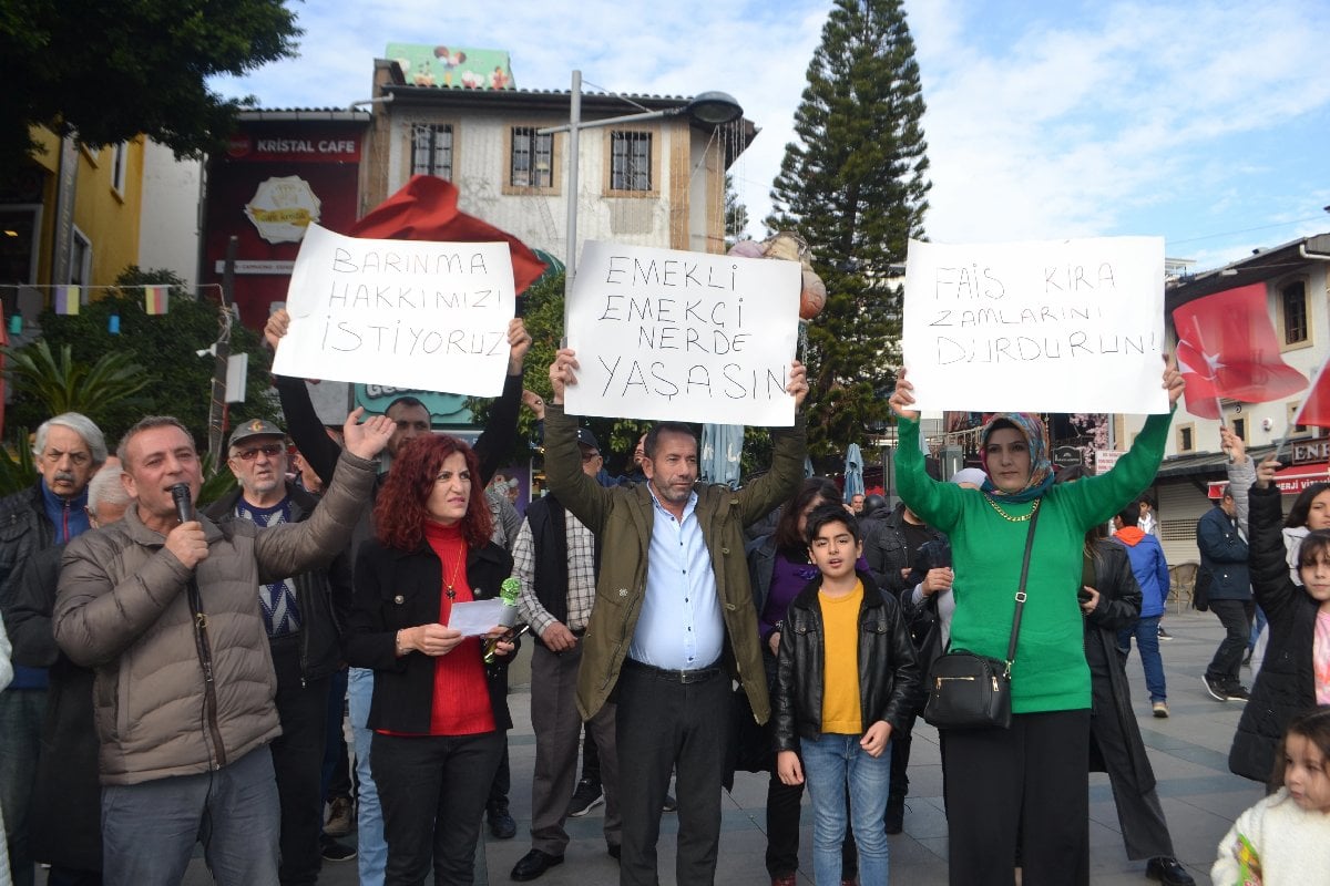 Hepimizin bildiği üzere bütün bu olumsuzlukların ardından Türkiye genelinde özellikle de yaşadığımız şehrimiz Antalya’da yaklaşık 4 aydır yüzde 800-900’lere varan konut fiyatlarının artışından kira bedellerinin olağanüstü artmasından ötürü biz kiracı mağdurları burada bir araya gelmiş bulunmaktayız.