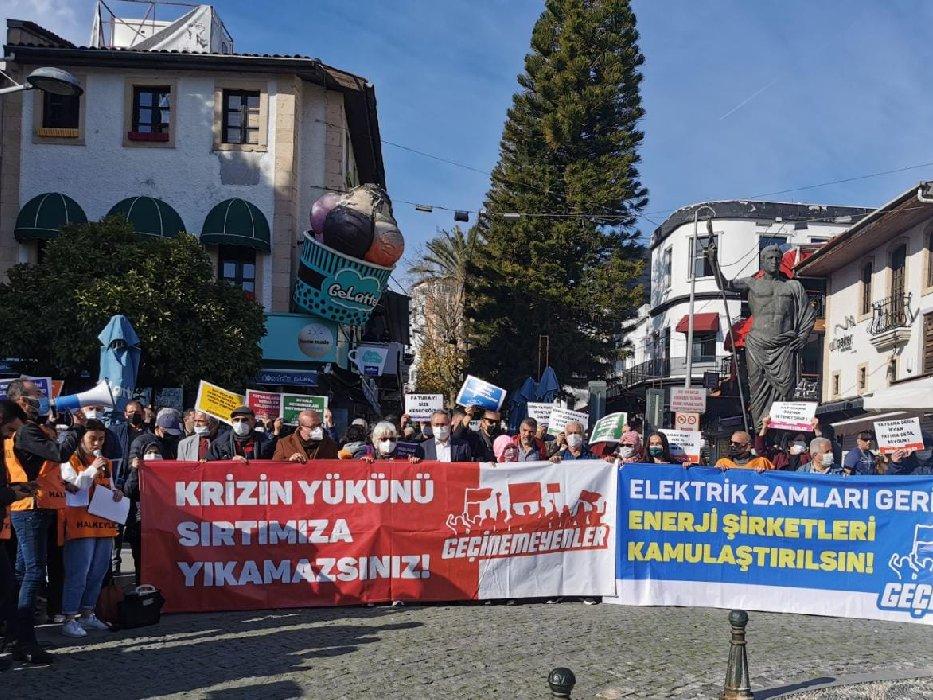 Antalya’da Geçinemeyenler yeniden Attalos Meydanı’nda elektrik zamlarına karşı toplandı. Çok sayıda demokratik kitle örgütü ve emek ve meslek örgütünün katılımıyla oluşturulan halk kürsüsünde Eğitim Sen Yönetim Kurulu Üyesi Çiğdem Altıntaş, Antalya Halkevi Başkanı Gülkan Gülseven ve Emekli Sen Yönetim Kurulu Üyesi Esat Dündar sözler alarak son dönemde gelen zamlar, yüksek enflasyon ve enerji alanındaki özelleştirmelerin faturalar üzerindeki etkisine dair konuşmalar yaptı.