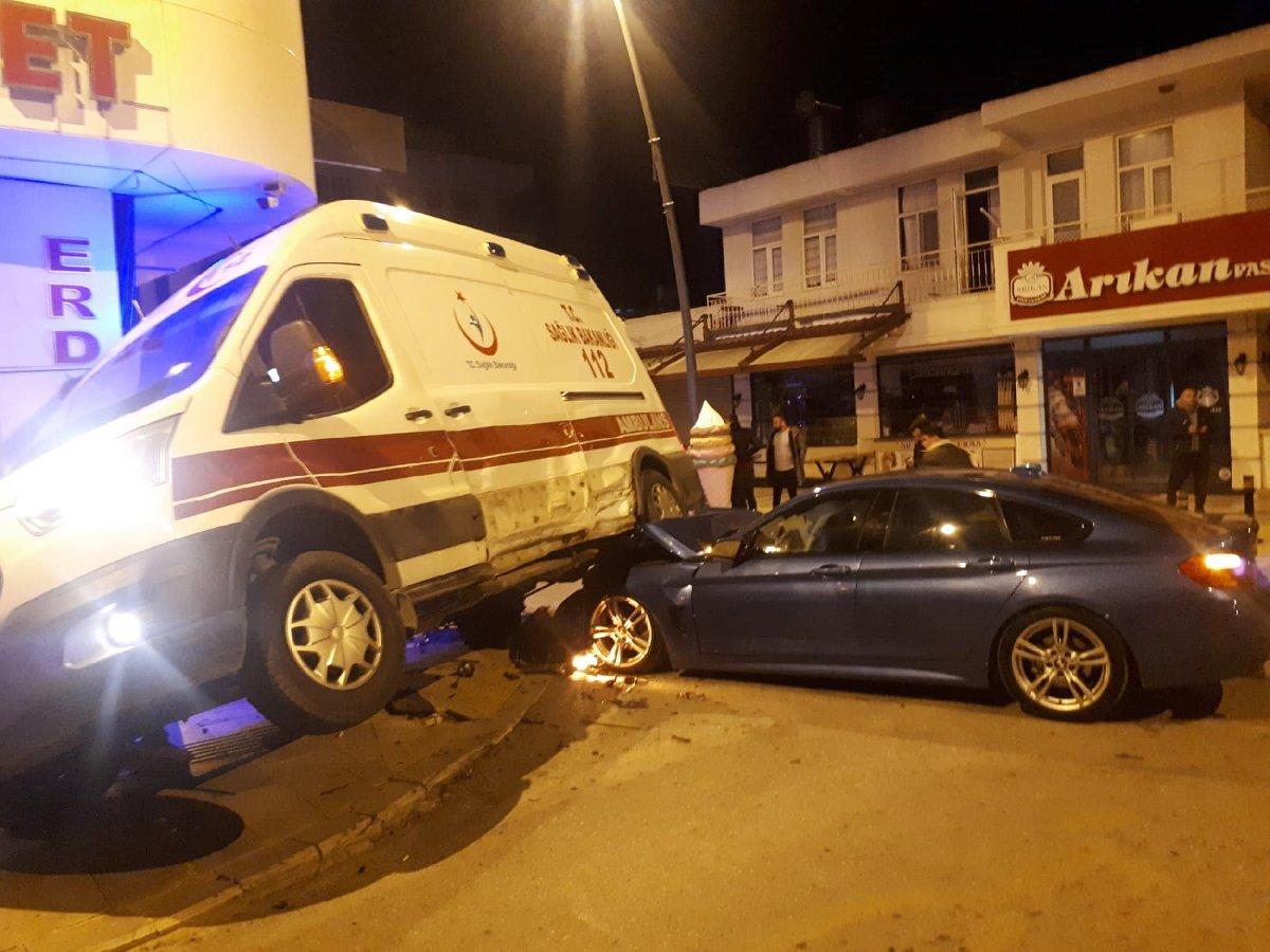 Kaza, dün saat 23.45 sıralarında, Manavgat ilçesi Aşağı Pazarcı Mahallesi'nde meydana geldi. Hasta ihbarına giden 112 Acil Çağrı Merkezi'ne ait Mehmet Karataş'ın kullandığı 07 VU 740 plakalı ambulansa, Latifhan Yatgın'ın kullandığı 07 ACR 11 plakalı otomobil yan tarafından çarptı.