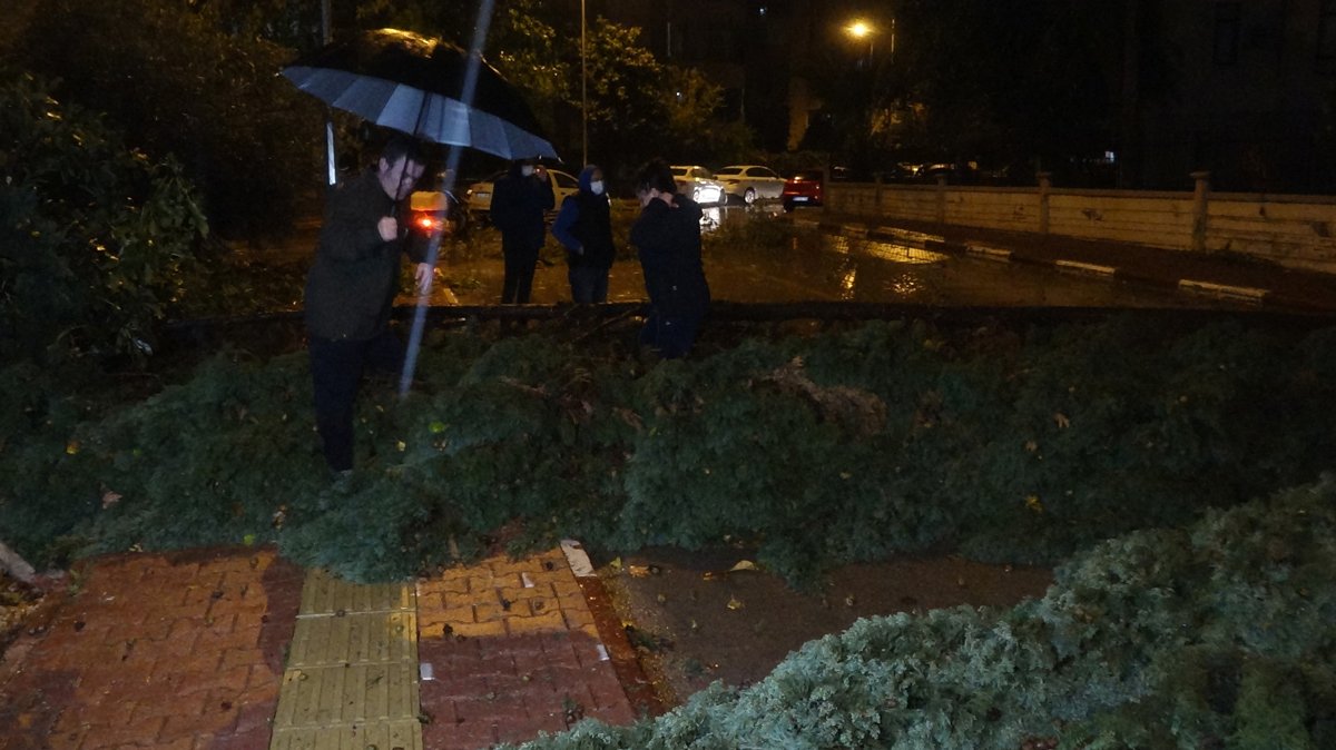 ŞİDDETLİ YAĞIŞ VE FIRTINA 20 AĞACI DEVİRDİ