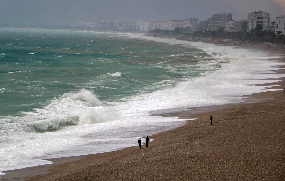 Konyaaltı Sahili'nde ise kuvvetli rüzgar nedeniyle dev dalgalar oluştu. Dalgalara ve rüzgara rağmen, az sayıda kişi geldikleri sahilde yürüdü.