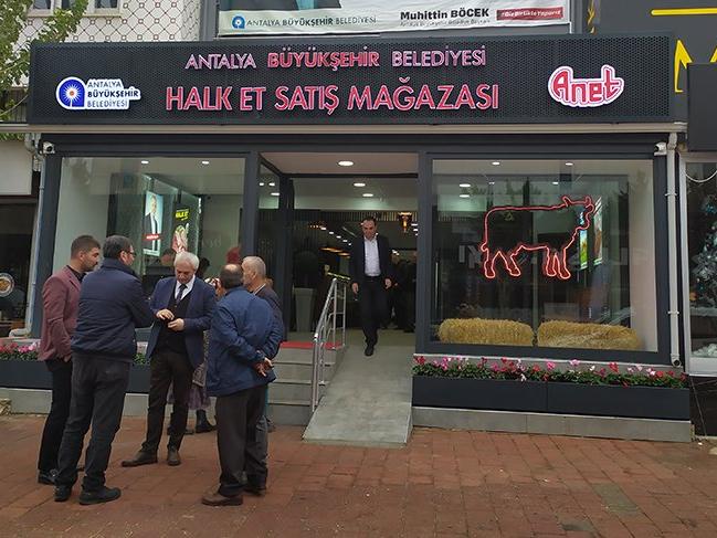 Halk Et satış mağazalarının ilki Kepez Zafer Mahallesi’nde hizmet vermeye başladı. Pazar hariç haftanın 6 günü 08.00-20.00 saatleri arasında hizmet verecek Halk Et’te dana kıymanın kilosu 35 lira 90 kuruş, dana kuşbaşının kilosu 44 lira 90 kuruş gibi rakamlarla satılıyor.