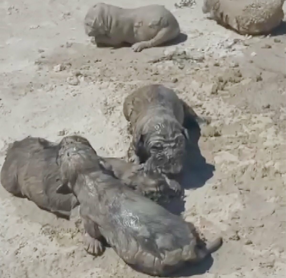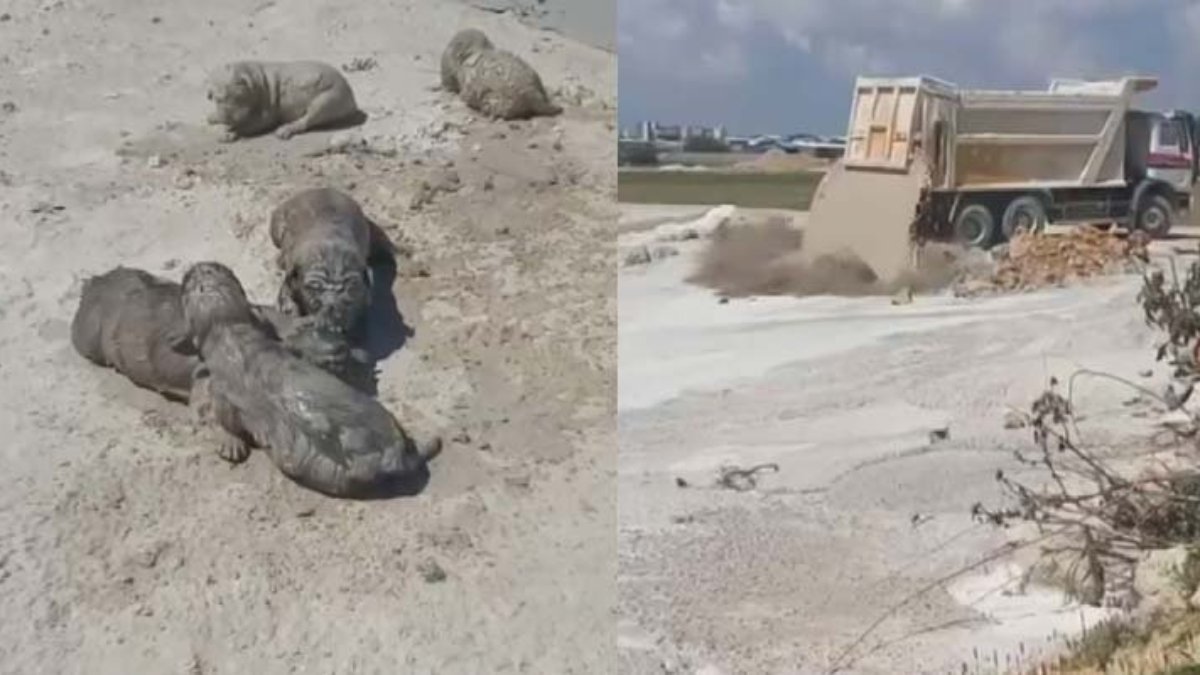 Yavruların üzerine beton atığının dökülmesi ise cep telefonu kamerasına yansıdı. Görüntülerde, anne köpeğin ıslanan yavrularına yaklaşamadığı görüldü.