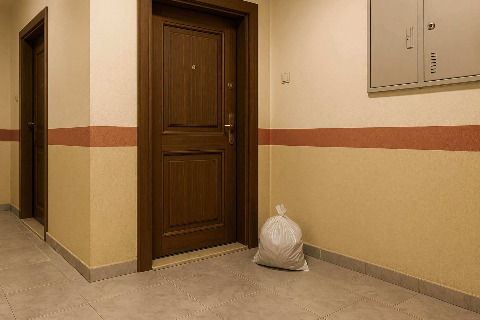 Apartmanlarda kapı önüne çöp poşeti bırakmak hem kötü kokuya hem de hijyen sorunlarına yol açıyor.