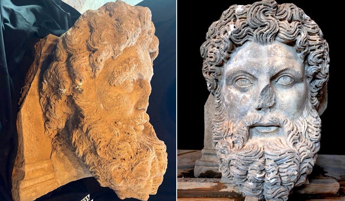 "Yüzyıllar sonra gün ışığıyla yeniden buluşan mermer baş, Yunan mitolojisinde en güçlü ve önemli tanrı olan Zeus’un ihtişamını sergiliyor.