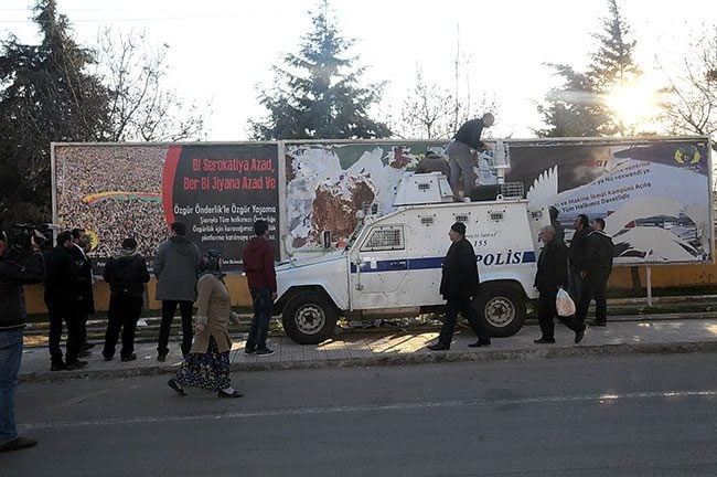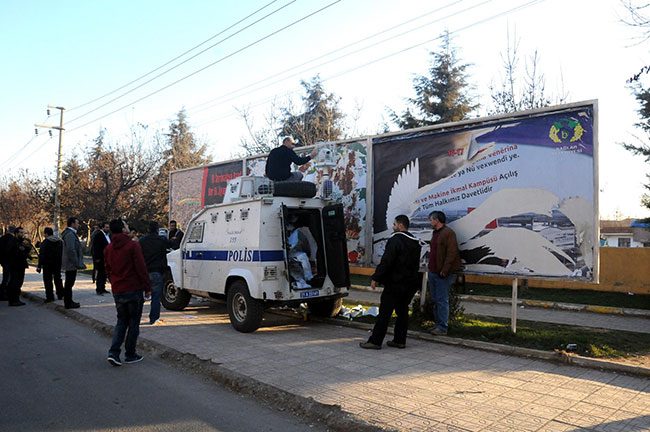 Mahkeme kararı üzerine Diyarbakır Emniyet Müdürlüğü'ne bağlı polisler Abdullah Öcalan'ın fotoğraflarının bulunduğu afişleri akşam saatlerinde bilboardlardan söktü. Bilboardlara yanaştırdıkları bir polis panzerinin üzerine çıkan sivil polisler yanlarında getirdikleri bıçaklarla Öcalan'ın fotoğrafının bulunduğu afişleri kopararak söktü. Polisler söktükleri afişleri panzere koyarak yanlarında götürdü.