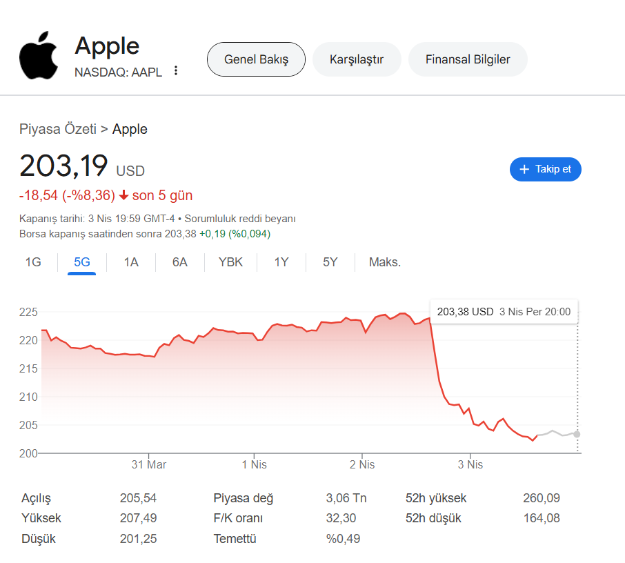 Apple, son yıllarda üretimini Çin dışına kaydırarak Hindistan, Vietnam ve Malezya gibi ülkelere yönelmişti. Ancak Trump’ın tarifeleri bu ülkeleri de kapsayınca Apple için kaçış yolu kalmadı. Artan maliyetler ve küresel resesyon beklentisi, yatırımcıları endişelendirdi ve hisselerde sert düşüşe neden oldu.