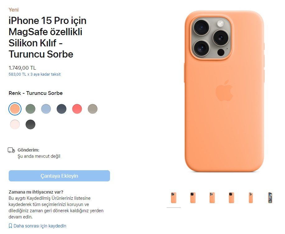 Ayrıca Apple Store'u süsleyen diğer ürünler arasında 59 dolara varan fiyatla yeni iPhone 15 kılıfları da dikkat çekiyor. iPhone 15 Pro kılıfının Türkiye'deki fiyatı ise 1.749 TL olarak listeleniyor.
