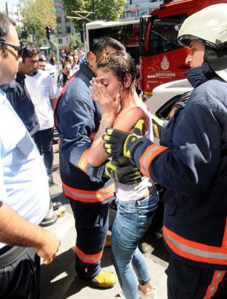 Olay yerine gelen polisler konuşarak panik halindeki Hülya Y.yi sakinleştirmeye çalıştı. Bu arada olay yerine gelen itfaiye aracın camlarını kırarak Hülya Y. yi dışarı çıkardılar.