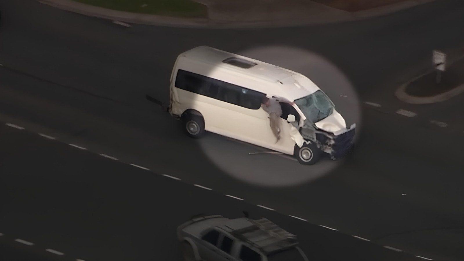 Takip, öğle saatlerine doğru Point Cook’taki Dunnings Yolu’nda sona erdi. Sürücü, hareket halindeki araçtan camdan dışarı atladı ancak hemen ardından sivil bir polis aracının çarpmasıyla yere savruldu.