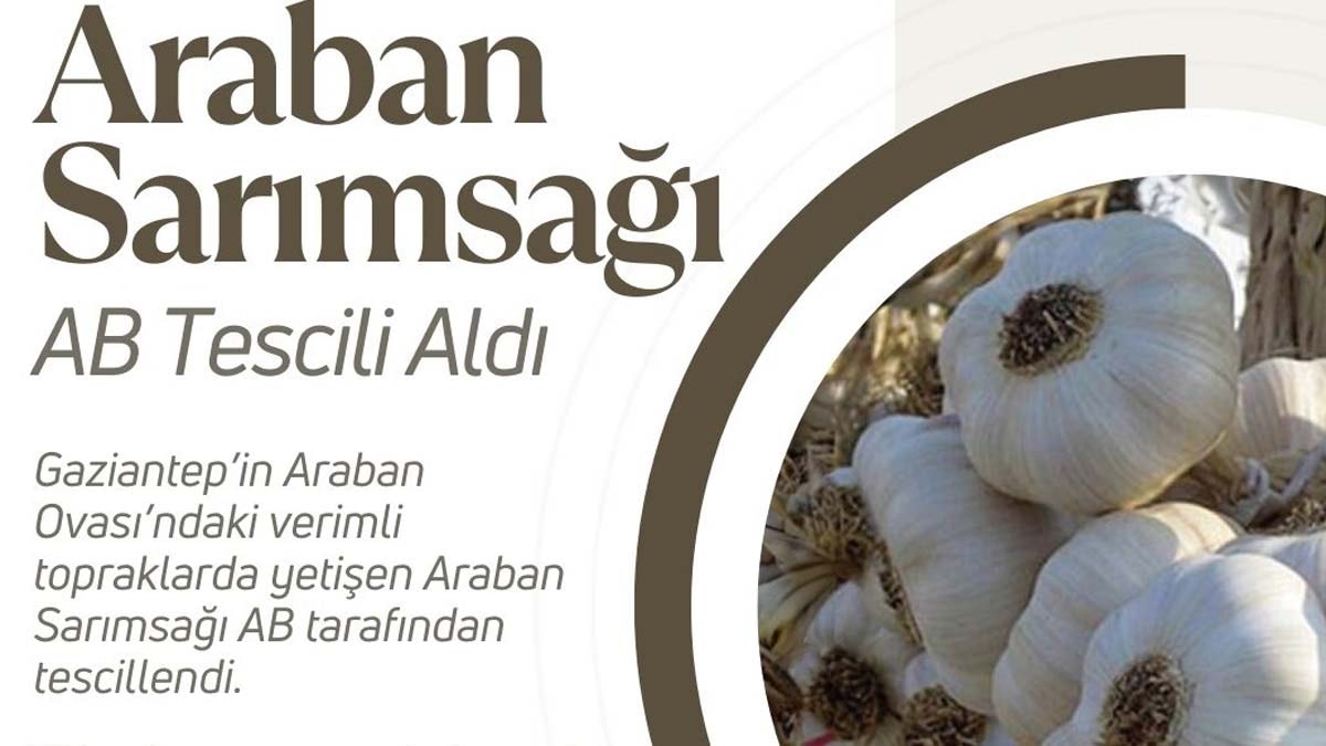 "AB'den coğrafi işaret tescili alan Araban sarımsağı ile tescilli ürün sayımız 21'e yükseldi. Araban Ovası'ndaki verimli topraklarda yetişen Araban sarımsağı, yüksek aroması ve kokusuyla diğer sarımsaklardan farklı bir lezzete sahip. Paydaş kurumlarımız işbirliğinde coğrafi işaretli ürün sayımızı artırmaya ve uluslararası alanda tanıtmaya devam edeceğiz."