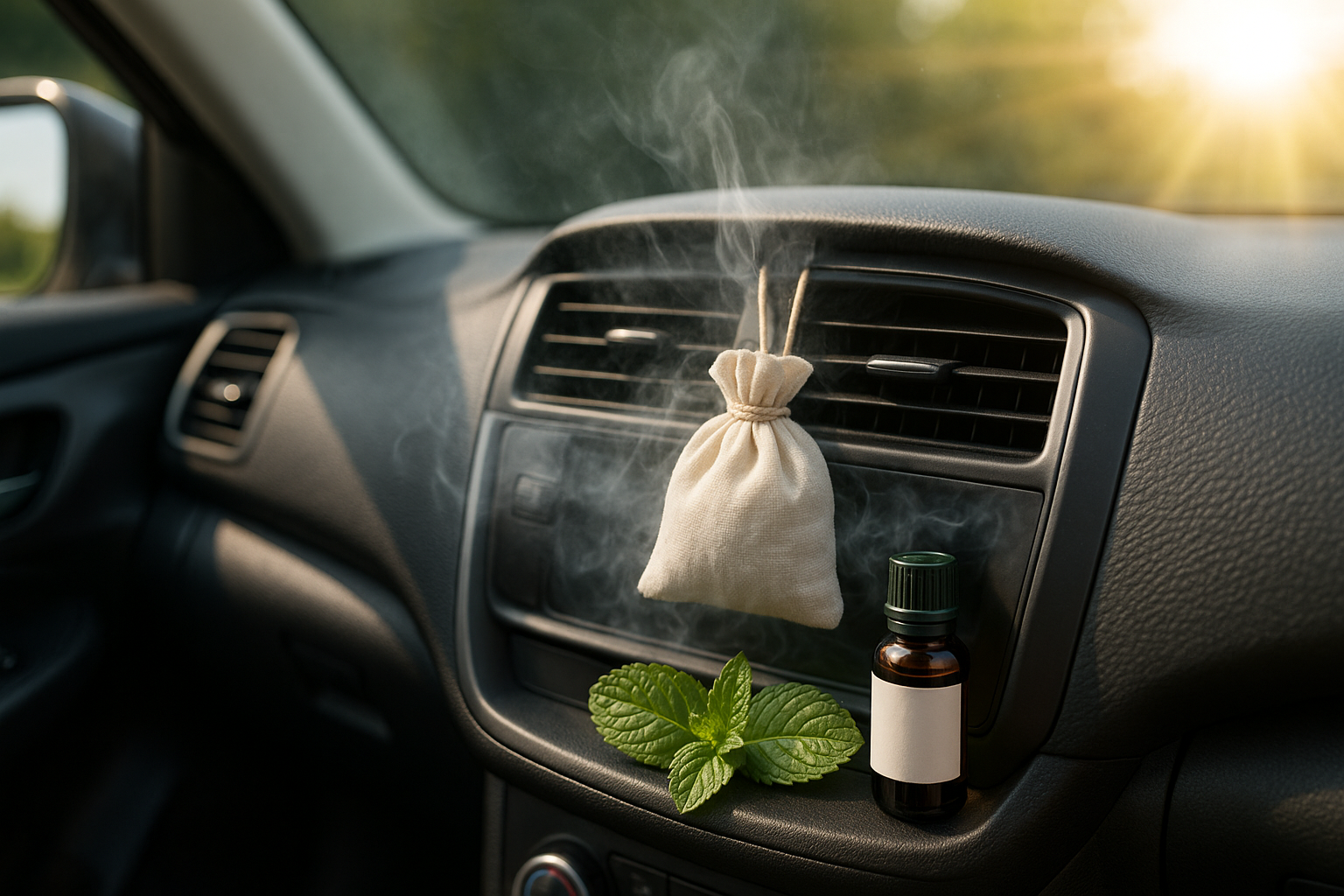 Bir adet pamuğu birkaç damla doğal nane yağıyla ıslatarak araç içine yerleştirdiğinizde, araç içindeki hava ferahlıyor ve serinlik hissi veriyor. Nane yağı, ferahlatıcı etkisinin yanı sıra kötü kokuları da yok ediyor.