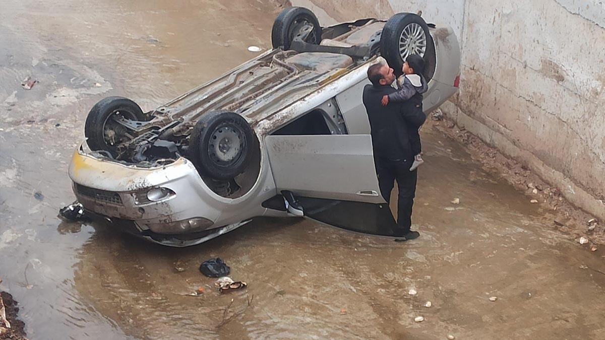Şanlıurfa'nın Eyyübiye ilçesinde, Ahmet A. idaresindeki 63 BN 411 plakalı otomobil, Sancaktar Mahallesi Oduncu Pazarı mevkisinde kontrolden çıkarak içerisinde az su bulunan Karakoyun Deresi yatağına düştü.