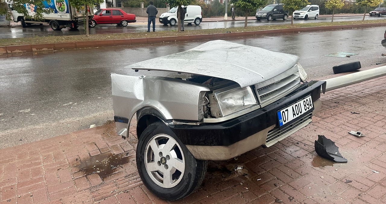 Mustafa T. yönetimindeki 07 AOU 894 plakalı otomobil, ilçe merkezi yönünde seyir halindeyken, yağmur nedeniyle kayganlaşan yolda kontrolden çıktı. Araç, yol kenarındaki aydınlatma direğine çarptı.