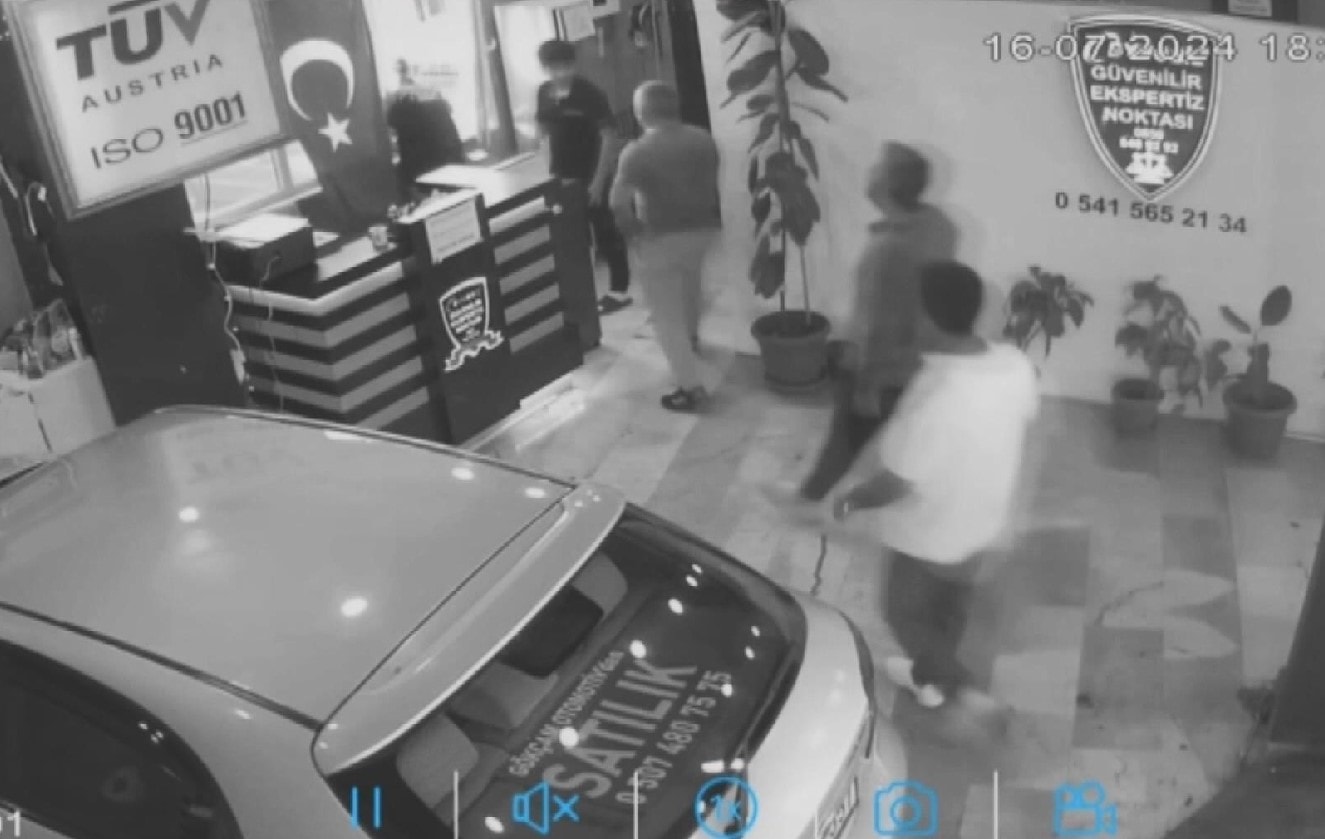 Aracı kontrol eden ekspertiz ustası Emrah Gökçe, "Ekspertiz firmamıza geldi. Aracın şasesinde, podilerinde, direklerinde kaynak işlemi olduğunu tespit ettik. Bu nedenle alıcı ve satıcı arasında bir tartışma yaşandı. Ardından kargaşa çıkınca satıcı arkadaş kendini camdan aşağı atmak zorunda kaldı. 'Benim masraflarımı vereceksin' dedi il dışından geldikleri için. Kabul etmeyince de birbirlerine girdiler burada. Orijinal diye beyan etmiş kendisine. Şaselerinde herhangi bir işlem olmadığını, air bag'lerin sağlam olduğunu söyleyince, burada tabii ister istemez burada bir anlaşmazlık oldu. Tartışma başladı sonra kargaşaya dönüştü. Burada boğuşmalar olunca da aracın sahibi kendisini arka camdan atmak zorunda kaldı. O anda biz tutmak için koştuk ama tutamadık" dedi.
