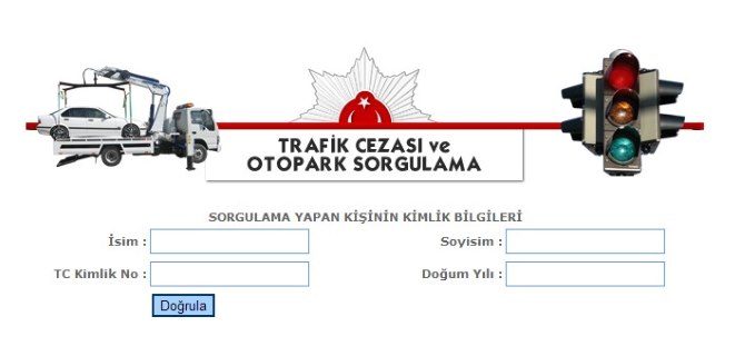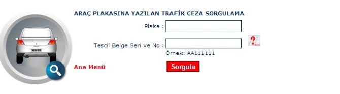 Ekrandan araç plakasına yazılan trafik cezası sorgulama seçimini yapan kişilere yeni bir form sunulur. Form ise şöyledir;