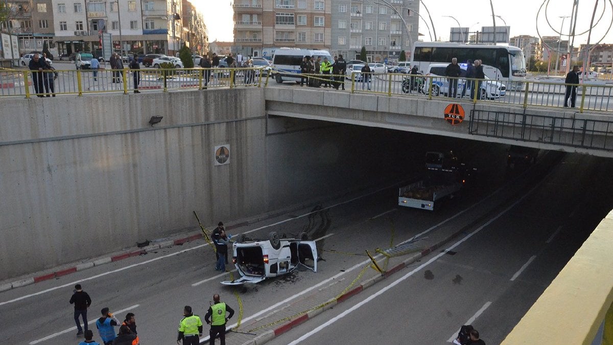 Mehmet Altın (63) yönetimindeki 70 ABM 714 plakalı hafif ticari araç, Cumhuriyet Mahallesi Ereğli köprülü kavşağı üst geçidinde demir bariyerleri aşarak alt geçide düştü.