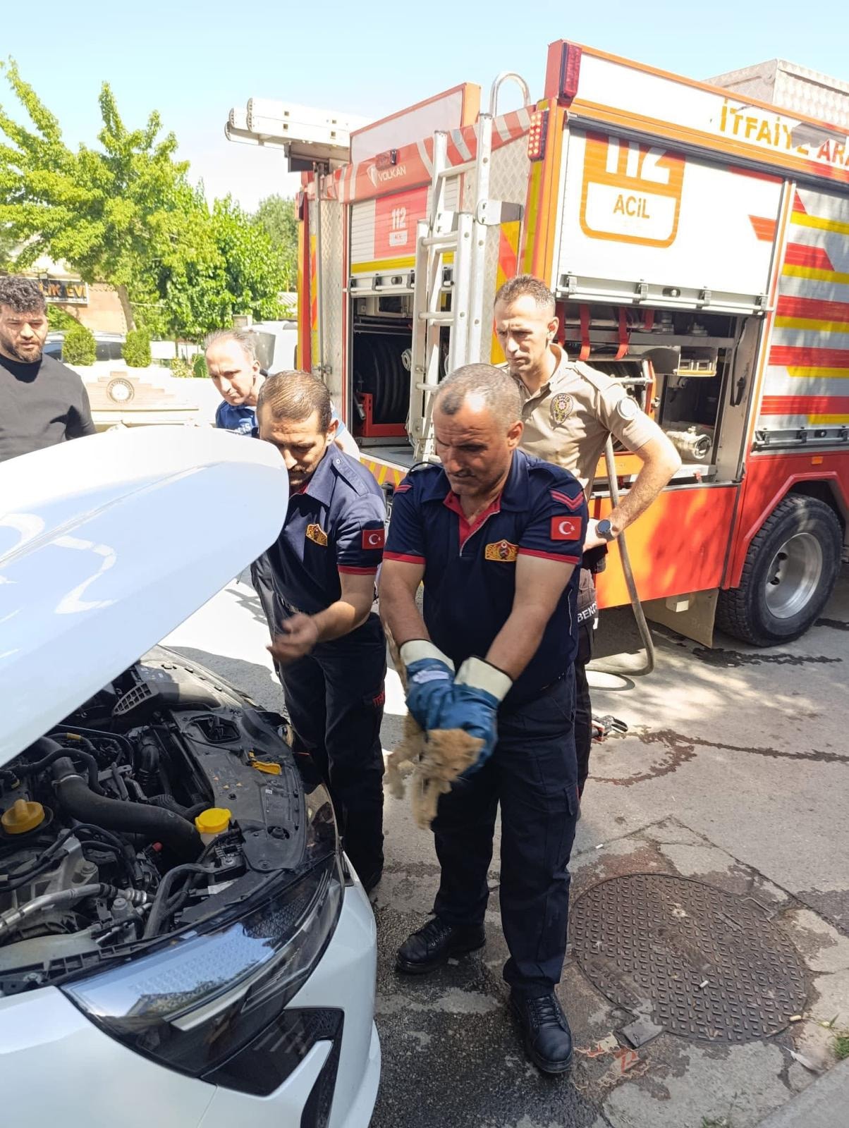 İstasyon Caddesi’nde park halindeki bir aracın motor bölümünden kedi sesi geldiğini duyanlar, durumu 112 Acil Çağrı Merkezi’ne bildirdi. İhbar üzerine bölgeye Muş Belediyesi İtfaiye Müdürlüğü ekipleri sevk edildi. Aracın kaputunu açan itfaiye ekipleri çalışma başlattı. Ekipler yavru kediyi sıkıştığı yerden çıkarıldı. Sağlık durumu iyi olan kedi, ekiplerin kontrollerinin ardından yaşam alanına salındı.