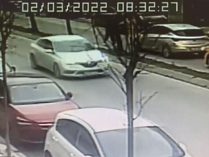 Kağıthane'de trafikte tartıştığı genç kadın ve çocuğunun olduğu otomobilin aniden önünü kesen bir şahıs, araca tekme ve yumruklar atıp tehditler savurdu. Şahsın yanındaki kadın tarafından güçlükle sakinleştirildiği olayda korku dolu o anlar kameralara yansıdı.