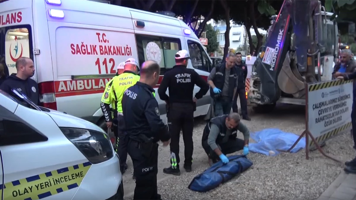 Antalya'da yolun karşısına geçmek isteyen Okan Işık (84), alt yapı çalışması sırasında geri manevra yapan kepçenin altında kalarak yaşamını yitirdi.