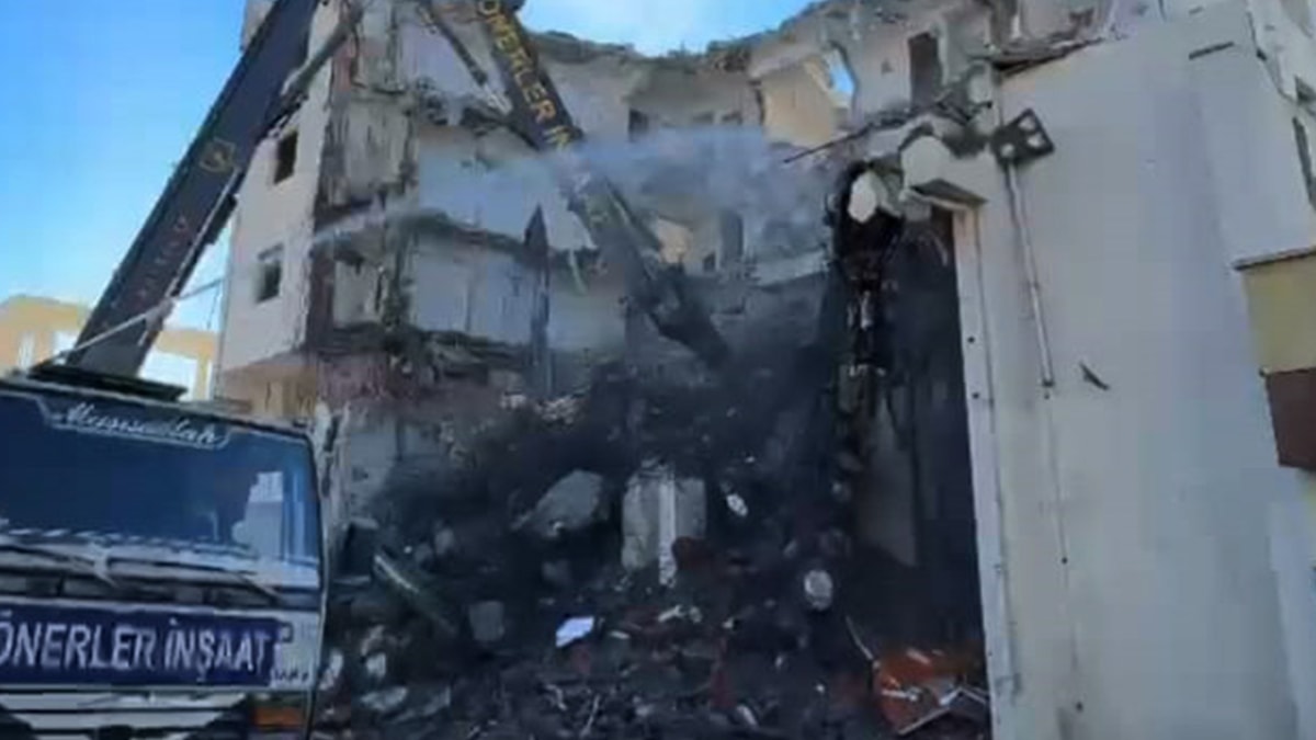 Kahramanmaraş merkezli depremlerde ağır hasar alan 47 yıllık banka binası depremin üzerinde geçen 2.5 yılda yıkılıyor.