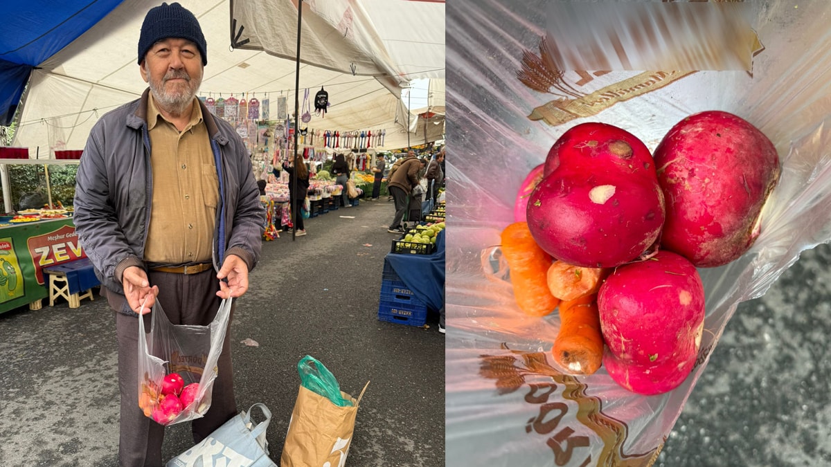 İstanbul'da 79 yaşındaki emekli vatandaş Eyüp Gök, elindeki poşeti gösterip "Bazen marketten, bazen pazardan topluyorum. Yoksa aç yatıyoruz. Çok utanıyorum ama başka çarem yok" dedi.