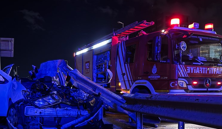Ümraniye’de bariyerlere saplanan otomobilde 1 ölü, 1 yaralı